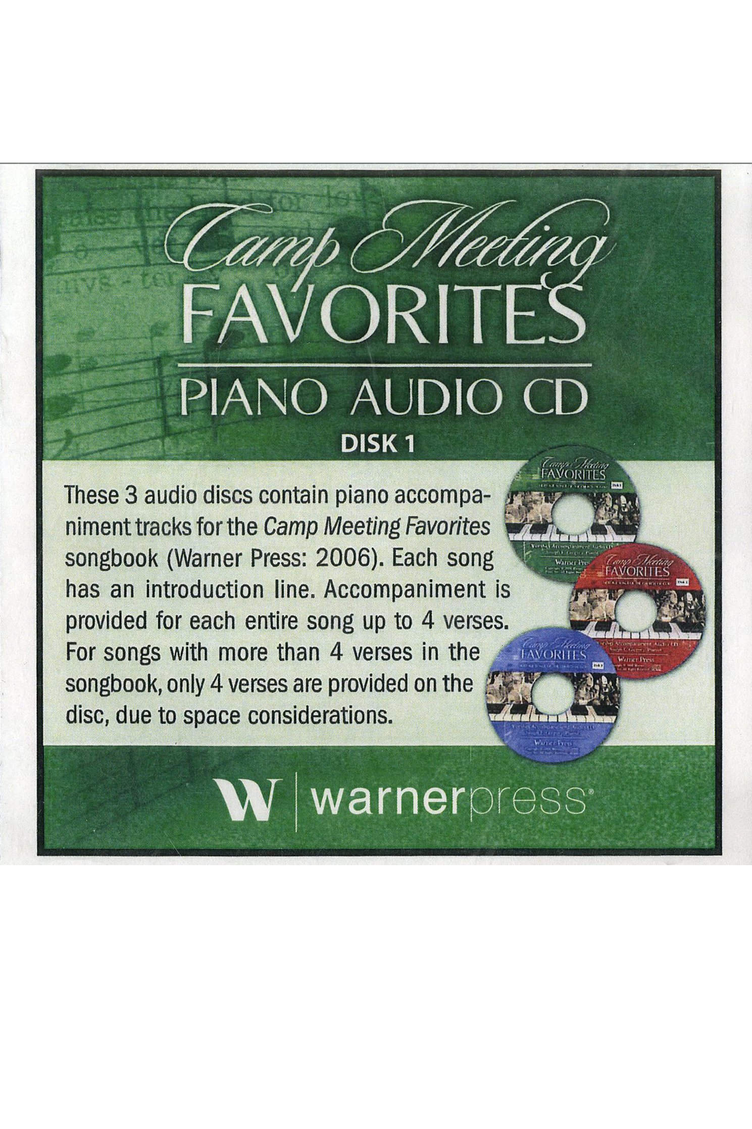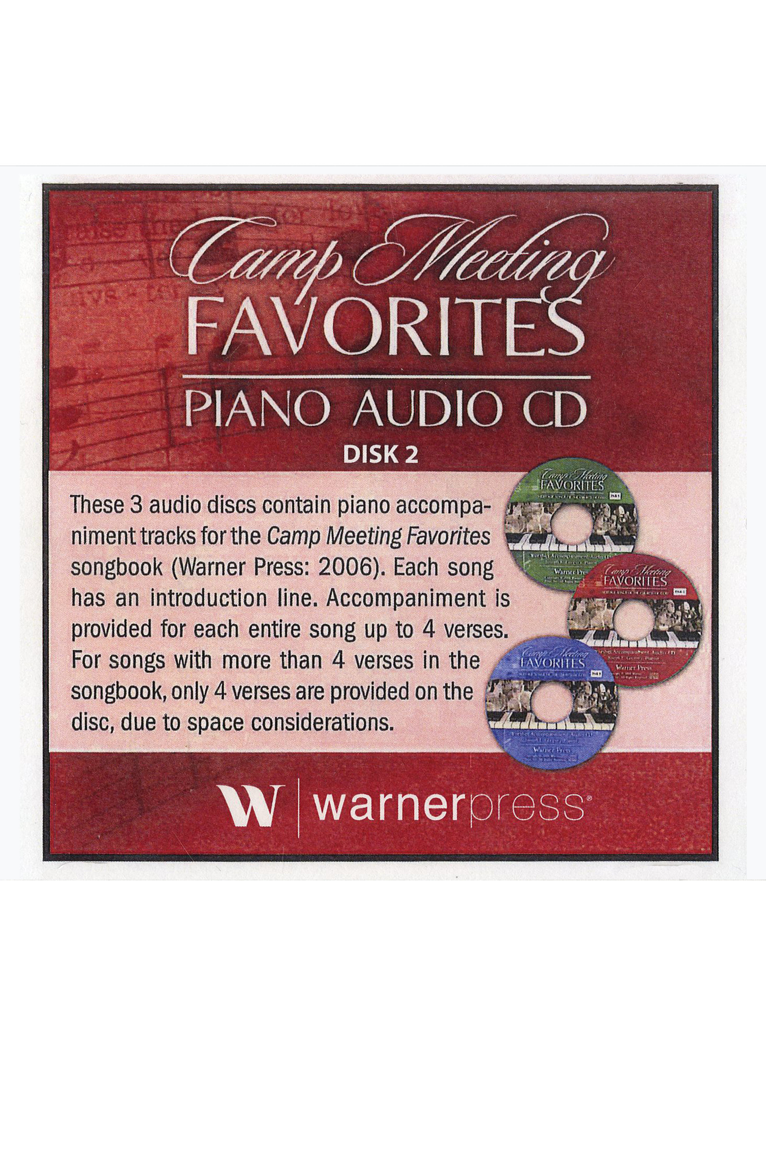 These 3 audio discs contain piano accompaniment tracks for the Camp Meeting Favorites songbook (Warner Press: 2006). Each song has an introduction line. Accompaniment is provided for each entire song up to 4 verses. For songs swith more than 4 verses in the songbook, only 4 verses are provided on the disc, due to space considerations.